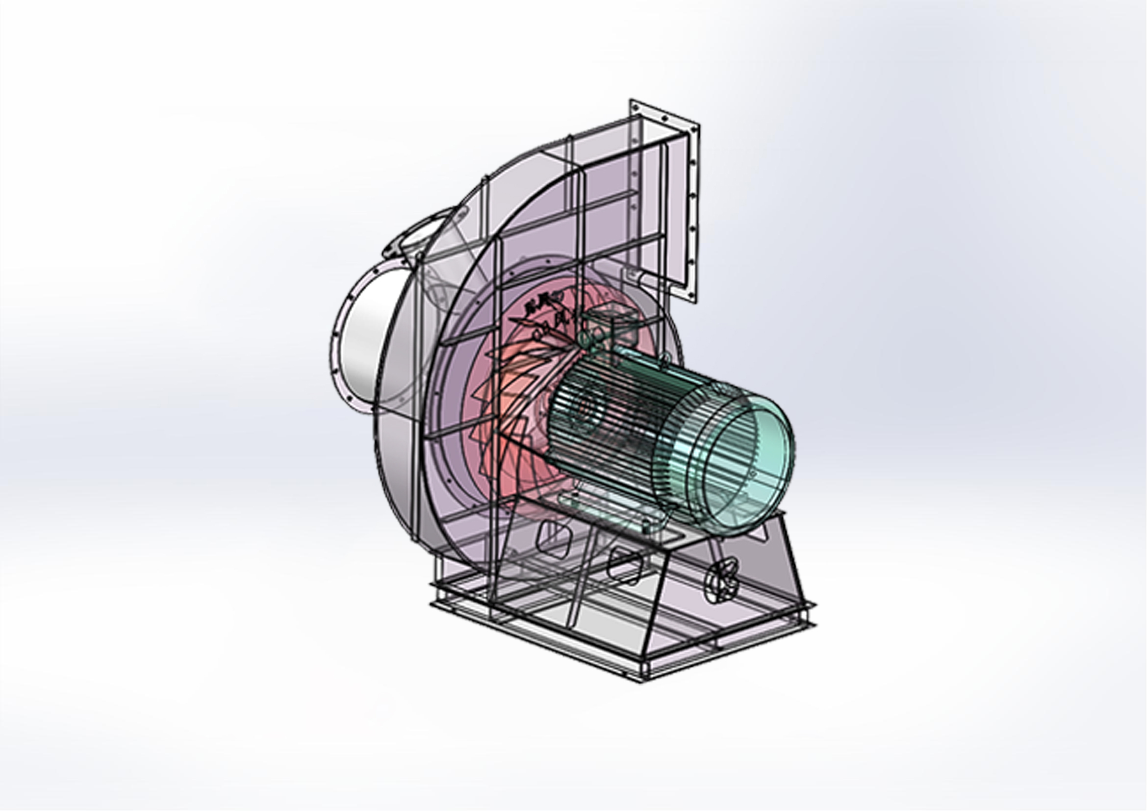 風(fēng)機結(jié)構(gòu)簡單,空間小,成本低,機械效率高。一般用在小風(fēng)量送風(fēng)助燃和小型工業(yè)風(fēng)機。利用流體力學(xué)分析有限元進行氣動設(shè)計,大大減少了模型機的制作,縮短了產(chǎn)品設(shè)計周期、效率得以提高。